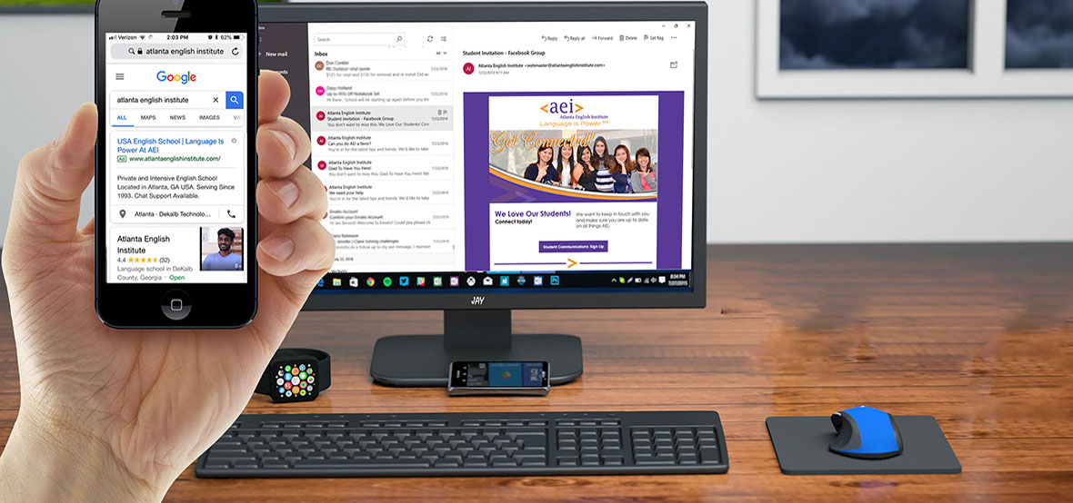 Teaching Seminar at North Fulton Chamber of CommerceB. Zachary Bennett was teaching a four hour class on how to utilize social media as a business at the North Fulton Chamber of Commerce for SCORE. After the lecture was completed, the president of Atlanta English Institute (AEI) approached and requested a meeting. With changes in the immigration landscape on the horizon, AEI (an ESL school) needed to find a professional marketing agency to help them prepare and perfect their student recruitment and admissions process. DISCOVERY